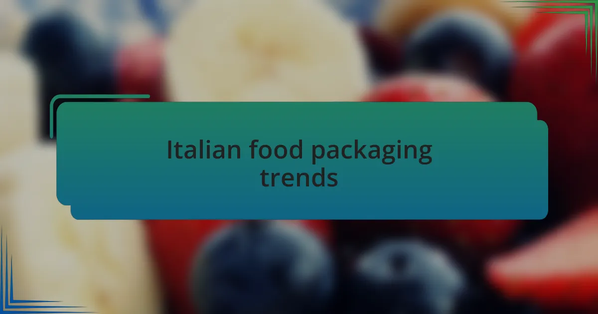 Italian food packaging trends have evolved significantly, emphasizing minimalism and authenticity. The less-is-more approach resonates deeply with me, as I recall unpacking a simple, beautifully designed pasta box that highlighted its artisanal roots. It felt like unearthing a treasure that celebrated Italian craftsmanship, which made the experience all the more enjoyable. How often do we appreciate the story behind our food as much as the flavor itself?